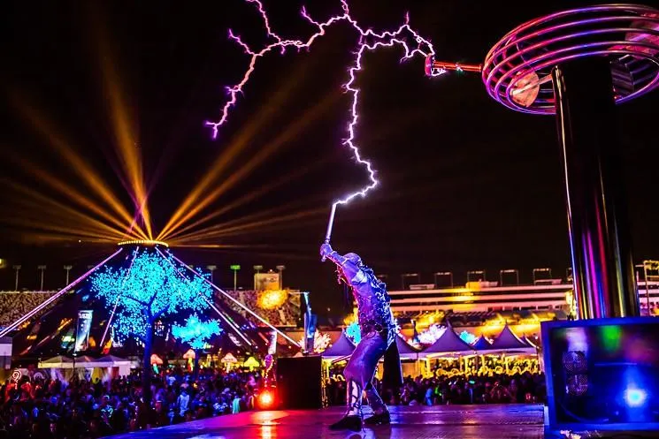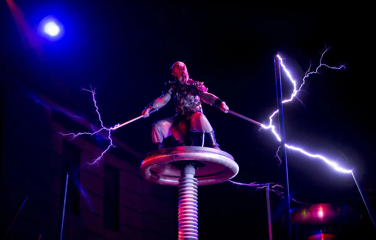 Yes. SkyFire Arts has been performing this act on 4 continents for the last 15 years. The safety system that we have designed in that time allows us to throw 10 foot long arcs of electricity without feeling a thing. Our methods are proprietary and everyone will need to sign NDAs and liability waivers.